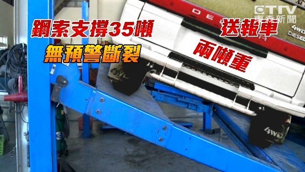 修車廠說這機台只使用2年,升降次數只有2千多次,距離2年更換標準6千多次還有一大段距離,還算是新的機台,但鋼索卻突然斷裂導致客戶的貨車受損,還沒收到保養費用,現在得先煩惱後續的賠償問題。